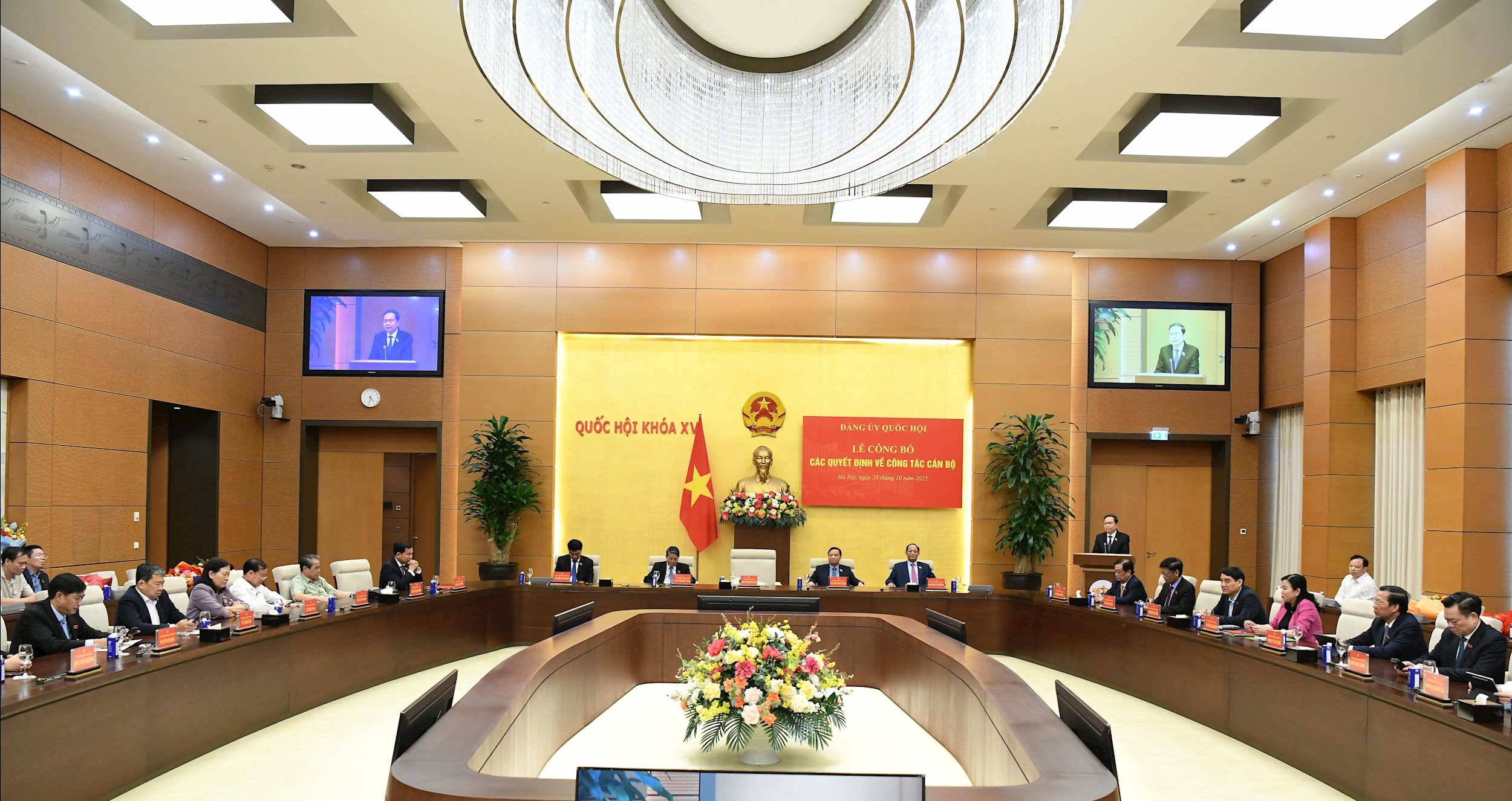 Chủ tịch Quốc hội Trần Thanh Mẫn chủ trì Lễ công bố các quyết định về công tác cán bộ