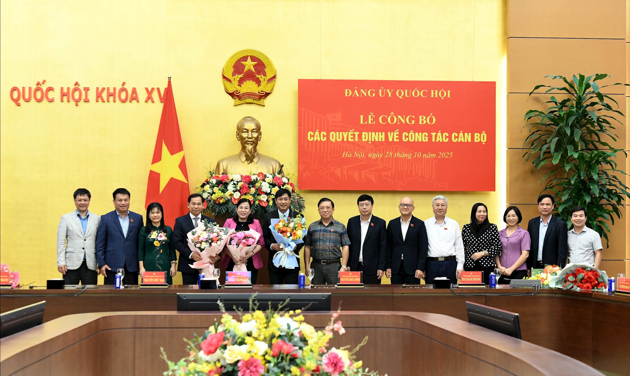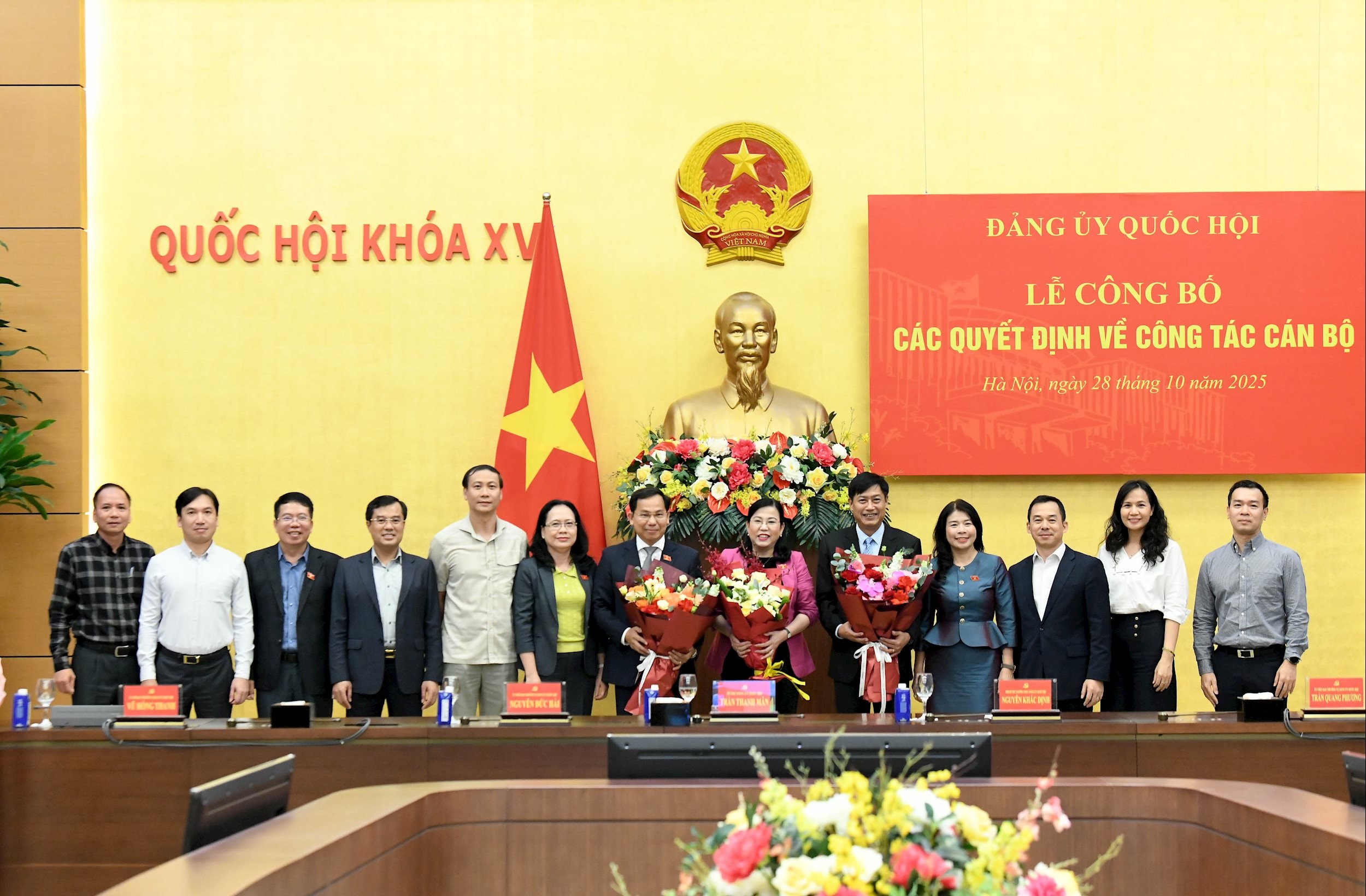 Tại buổi lễ, Phó Trưởng Ban Tổ chức Đảng ủy Quốc hội, Phó Chủ nhiệm Ủy ban Công tác đại biểu Tạ Thị Yên đã công bố các quyết định của Ban Thường vụ Đảng ủy Quốc hội về công tác nhân sự.