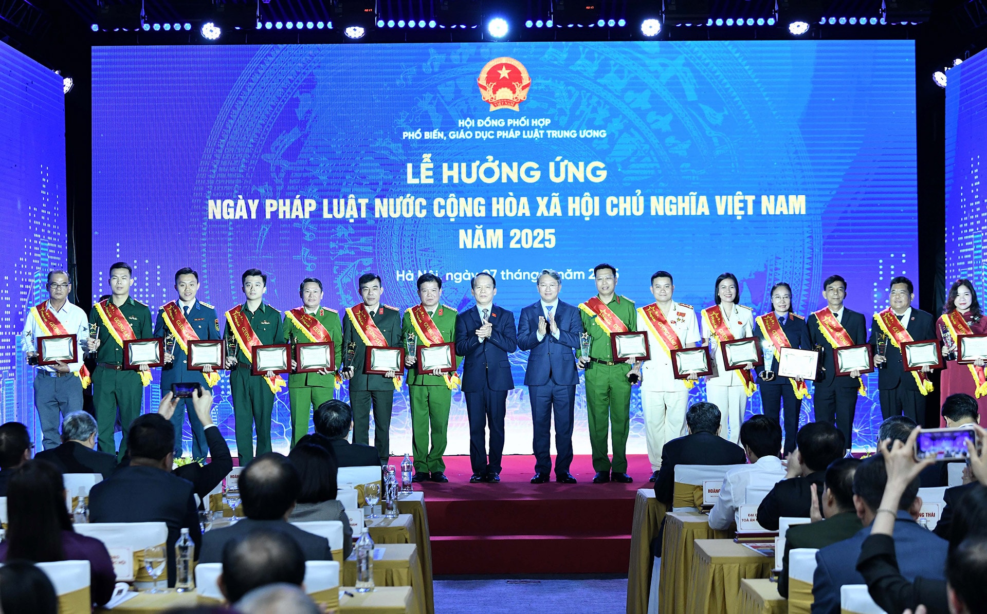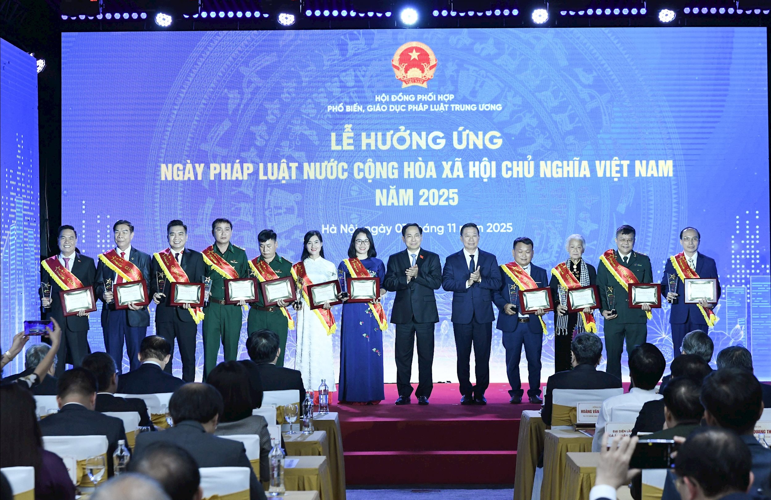 Nhân dịp này, Chủ tịch Quốc hội Trần Thanh Mẫn và Phó Thủ tướng Hồ Quốc Dũng cùng các đại biểu đã trao Bằng khen của Thủ tướng Chính phủ tặng các tập thể, cá nhân đạt thành tích xuất sắc trong công tác xây dựng, thi hành pháp luật và tuyên truyền, phổ biến, giáo dục pháp luật; trao chứng nhận và kỷ niệm chương tôn vinh "Gương sáng Pháp luật" lần thứ III.