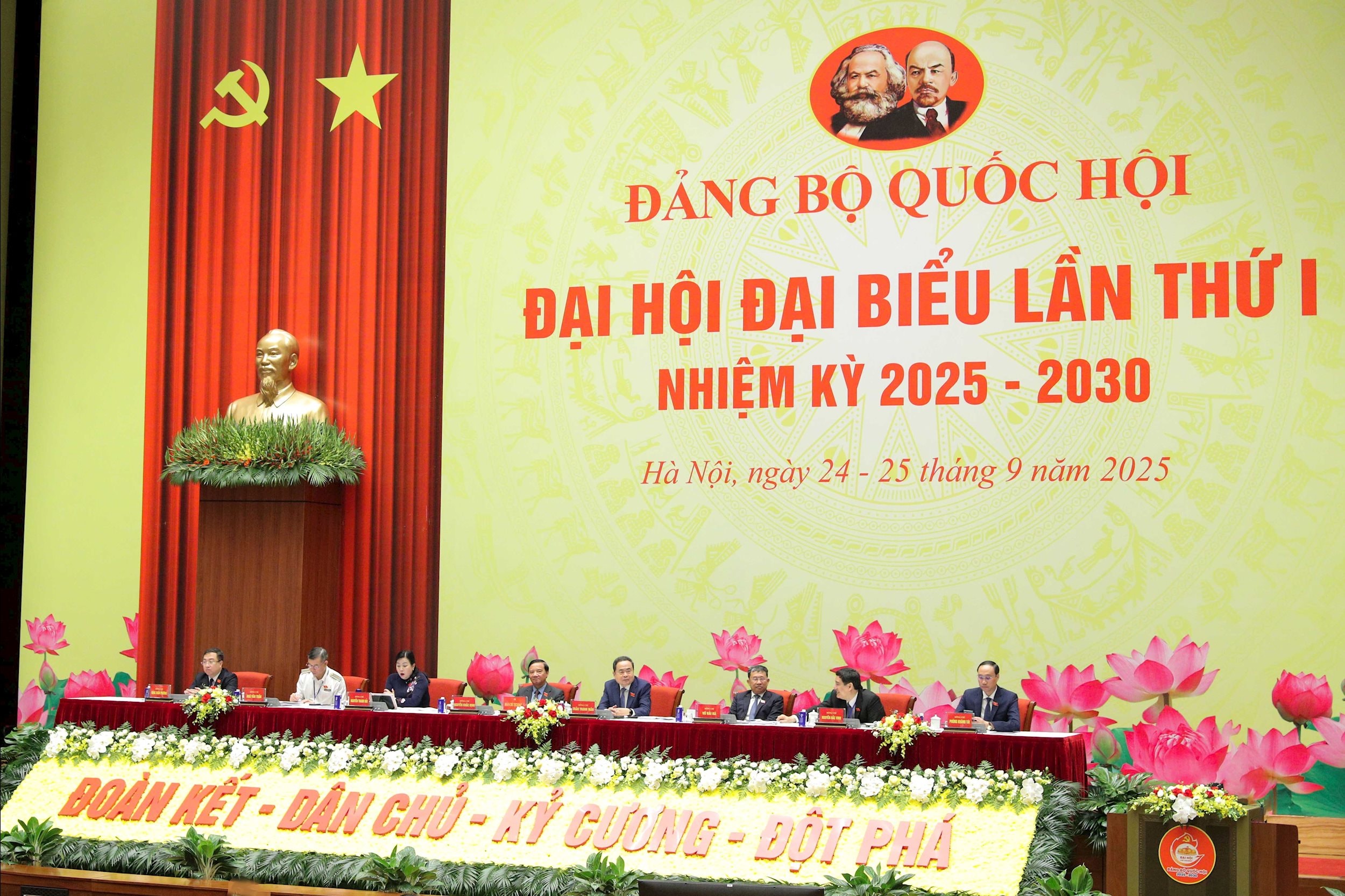 Đại hội nghe trình bày Báo cáo tổng hợp ý kiến góp ý vào dự thảo Báo cáo Chính trị trình Đại hội đại biểu Đảng bộ Quốc hội lần thứ I, nhiệm kỳ 2025-2030; trình bày các tham luận của Đại hội và thông báo chia tổ thảo luận.