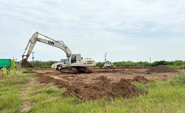 Đội Công binh số 4 tiến hành củng cố doanh trại tại Phái bộ UNISFA khu vực Abyei. Ảnh: CGGHBVN
