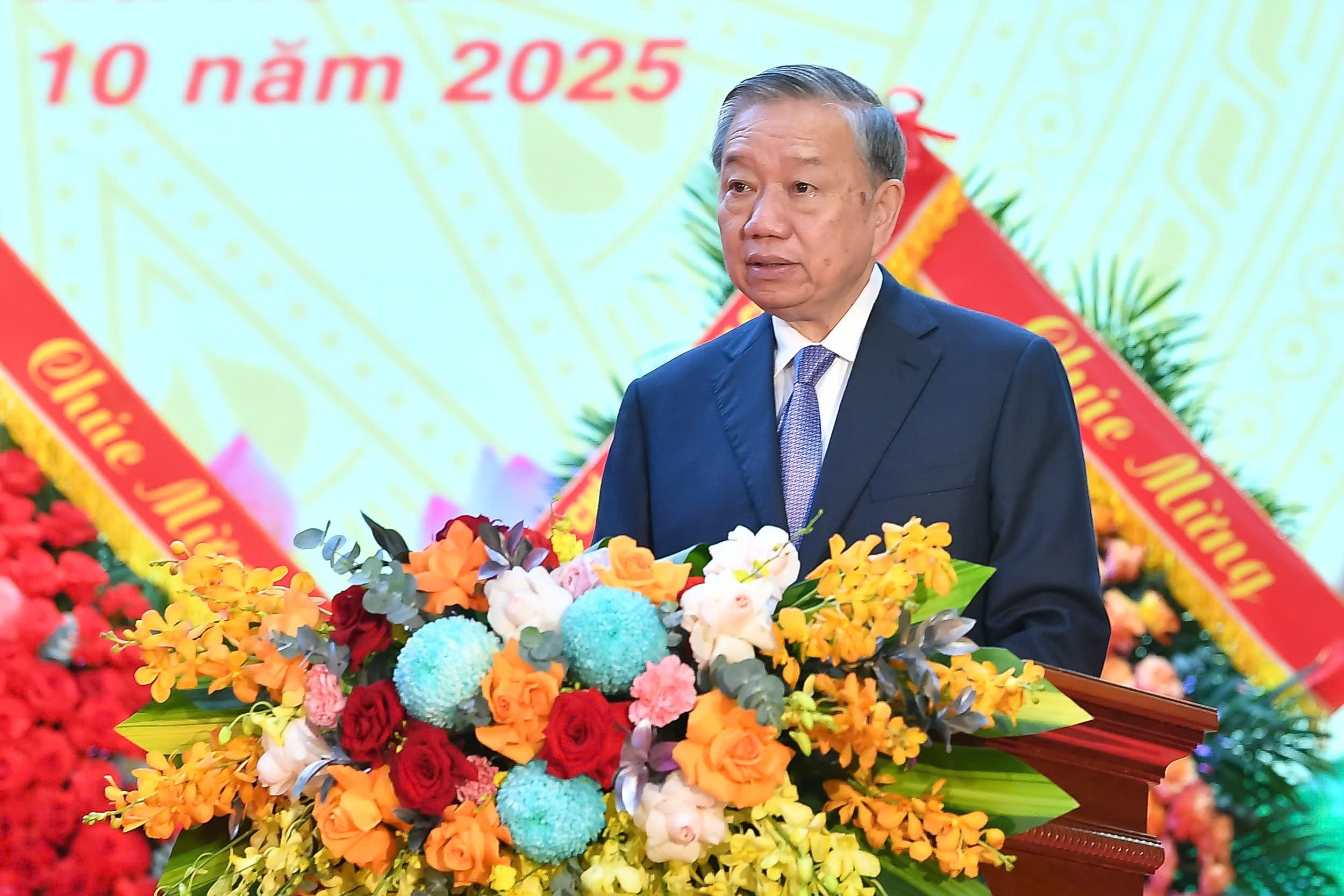 Tổng Bí thư Tô Lâm, Bí thư Quân ủy Trung ương dự và phát biểu chỉ đạo tại Lễ kỷ niệm. Ủy viên Bộ Chính trị, Chủ tịch nước Lương Cường; Ủy viên Bộ Chính trị, Thủ tướng Chính phủ Phạm Minh Chính, các ban, bộ, ngành Trung ương, địa phương đã gửi lẵng hoa chúc mừng.