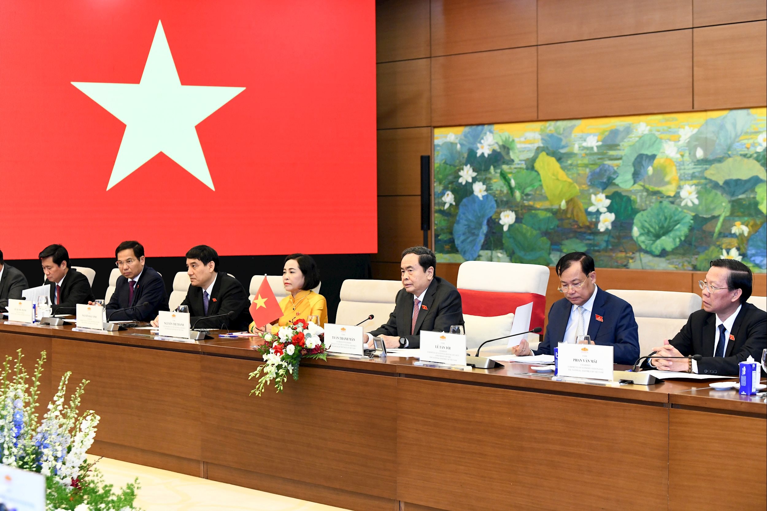 Hai Chủ tịch Quốc hội nhất trí thời gian tới tiếp tục tăng cường trao đổi đoàn các cấp, duy trì thường xuyên các cơ chế hợp tác giữa hai Đảng, Chính phủ, Quốc hội và các cơ chế chính trị-ngoại giao, kinh tế-thương mại và quốc phòng song phương. Hai bên cũng nhất trí sẽ tiếp tục phối hợp thúc đẩy triển khai hiệu quả các chính sách pháp luật hỗ trợ doanh nghiệp, tăng cường đầu tư vào các lĩnh vực phù hợp với nhu cầu, điều kiện và năng lực của mỗi nước; tạo điều kiện và giám sát triển khai hiệu quả các dự án hợp tác trọng điểm đã thống nhất; đồng thời cụ thể hóa các lĩnh vực hợp tác nhiều tiềm năng khác như du lịch, viễn thông, chuyển đổi số....
