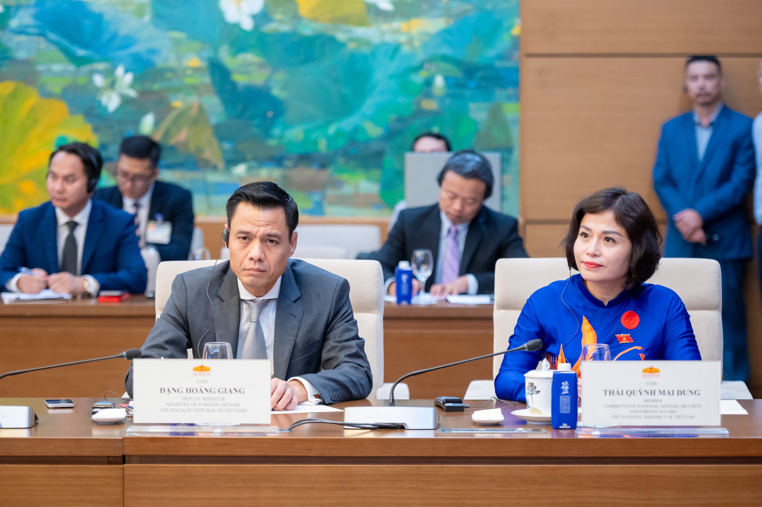 Hai Chủ tịch Quốc hội đánh giá quan hệ giữa hai cơ quan lập pháp được củng cố, tăng cường thông qua việc trao đổi thường xuyên và linh hoạt thông tin, chia sẻ kinh nghiệm về tổ chức hoạt động của Quốc hội, xây dựng thể chế, pháp luật và giám sát triển khai thực thi pháp luật, quyết định các vấn đề quan trọng của đất nước.